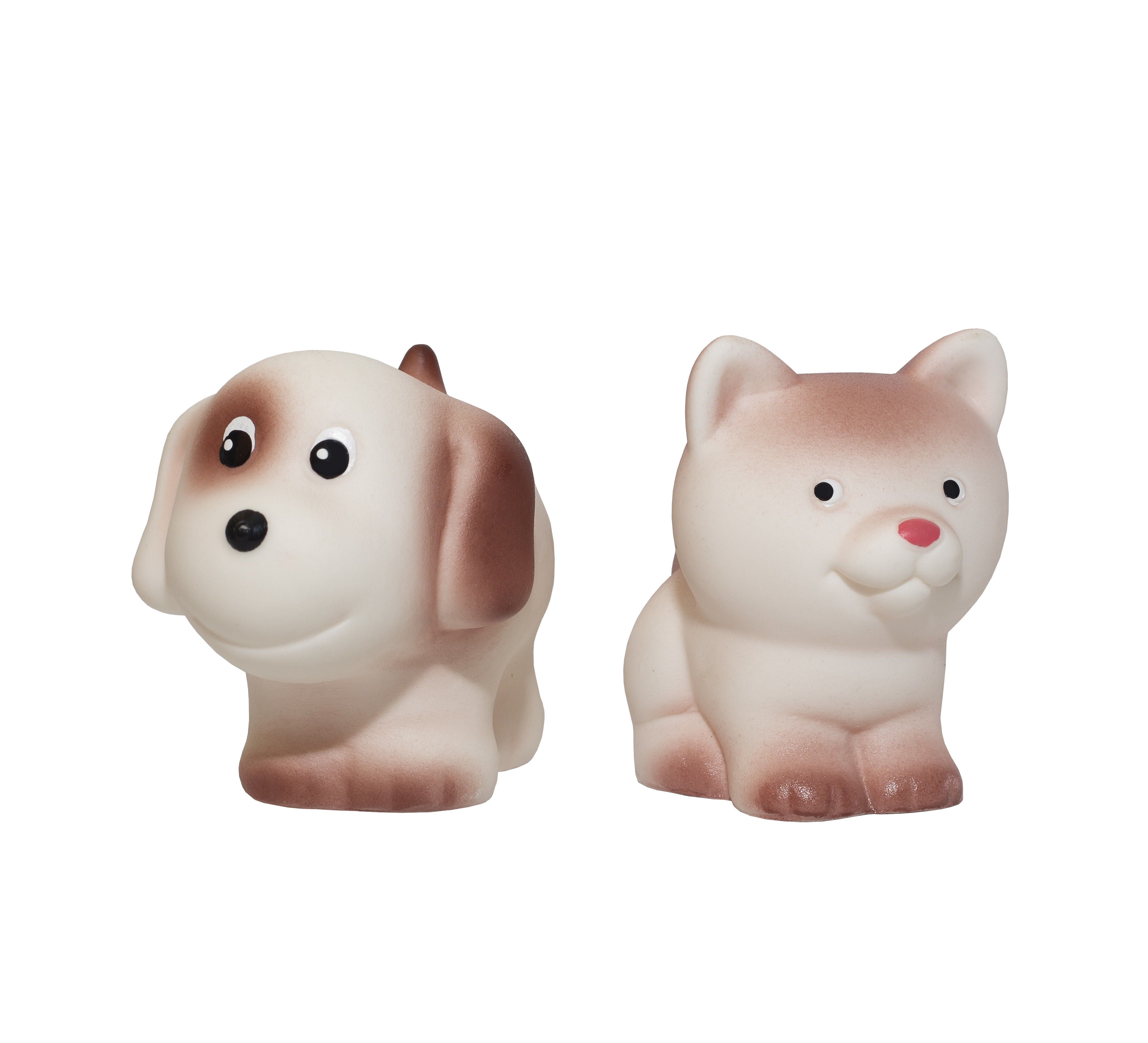 Милые "резиновые" игрушки замечательно подойдут в качестве подарка малышу. Ирушки приятно держать в руках. В набор входят котенок и щенок веселой раскраски. Малыш будет в восторге от таких милых друзей. С ними можно купаться, гулять и брать с собой  в гости. В случае загрязнения и перед игрой, помыть в теплой воде с мылом. Игрушка без пищалки! Высота котенка: 5 см.